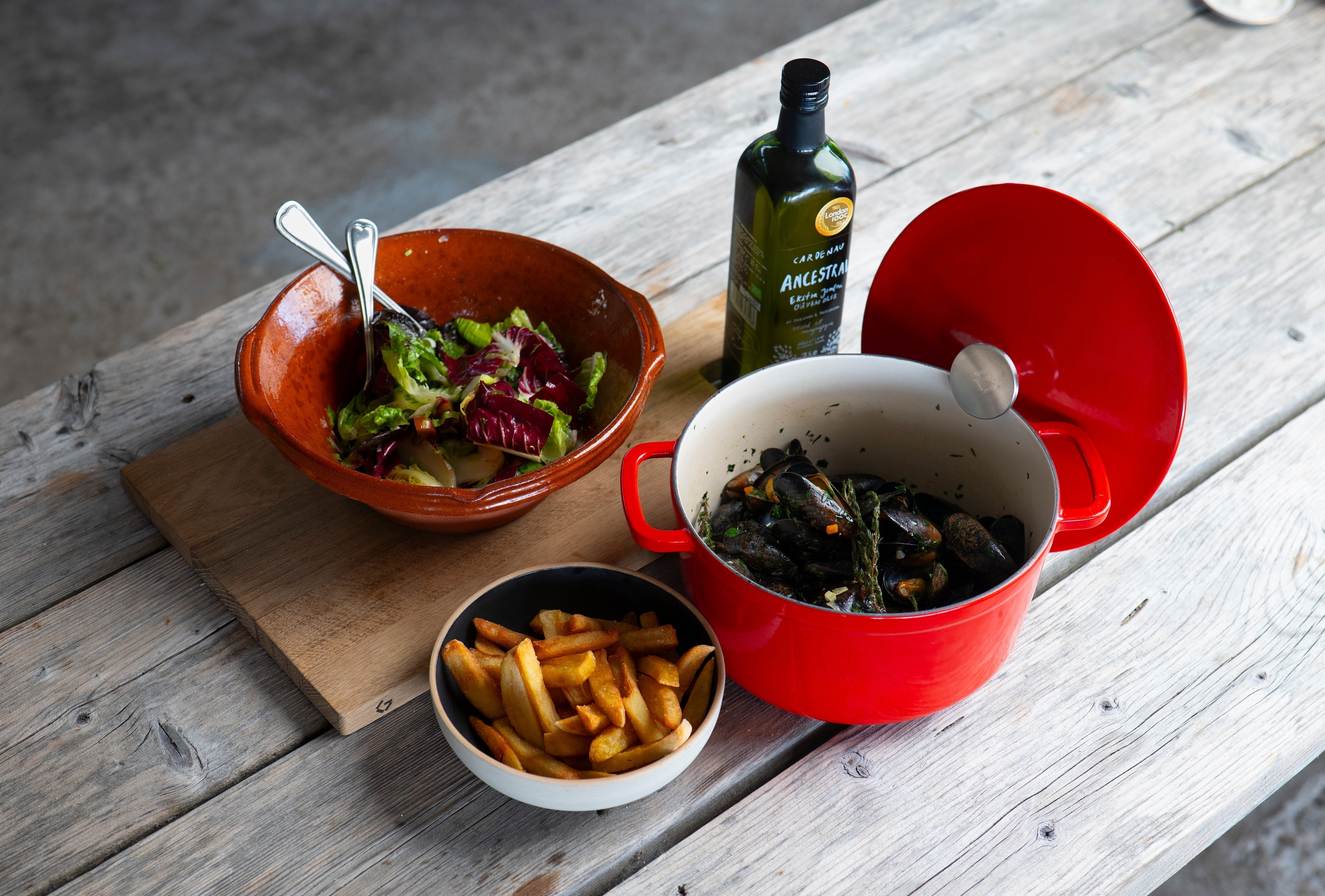 Moules frites med grøn salat