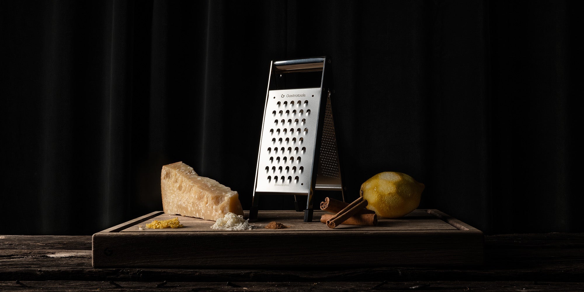 Vores foldbare rivejern kommer med 3 barberbaldsskarpe riveflader, så du kan rive gulerødder til din ragú alla bolognese, parmasan udover din cacio e pepe eller rive muskatnød til den perfekte bechamelsauce.