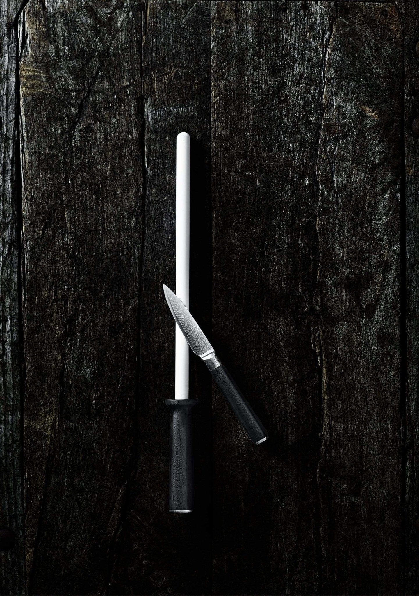 Opnå ultraskarpe køkkenknive med strygestålets finkornede, keramiske slibeflade. Keramik er et af de hårdeste materialer, som strygestål laves af – derfor er dette strygestål perfekt til selv dine fineste køkkenknive af hårdt stål.
