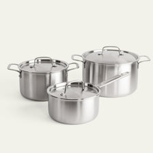 Vi har spurgt landets bedste kokke, hvordan den ultimative serie af gryder og pander ser ud, og her er den. Med professionelle detaljer som hældekant og et materialevalg, der bruges på verdens bedste restauranter. I sættet får du en gryde på 7 L og en gryde på 4 L. Med de to funktionelle størrelser er du godt dækket ind, uanset om du skal koge fond eller lave en gryderet