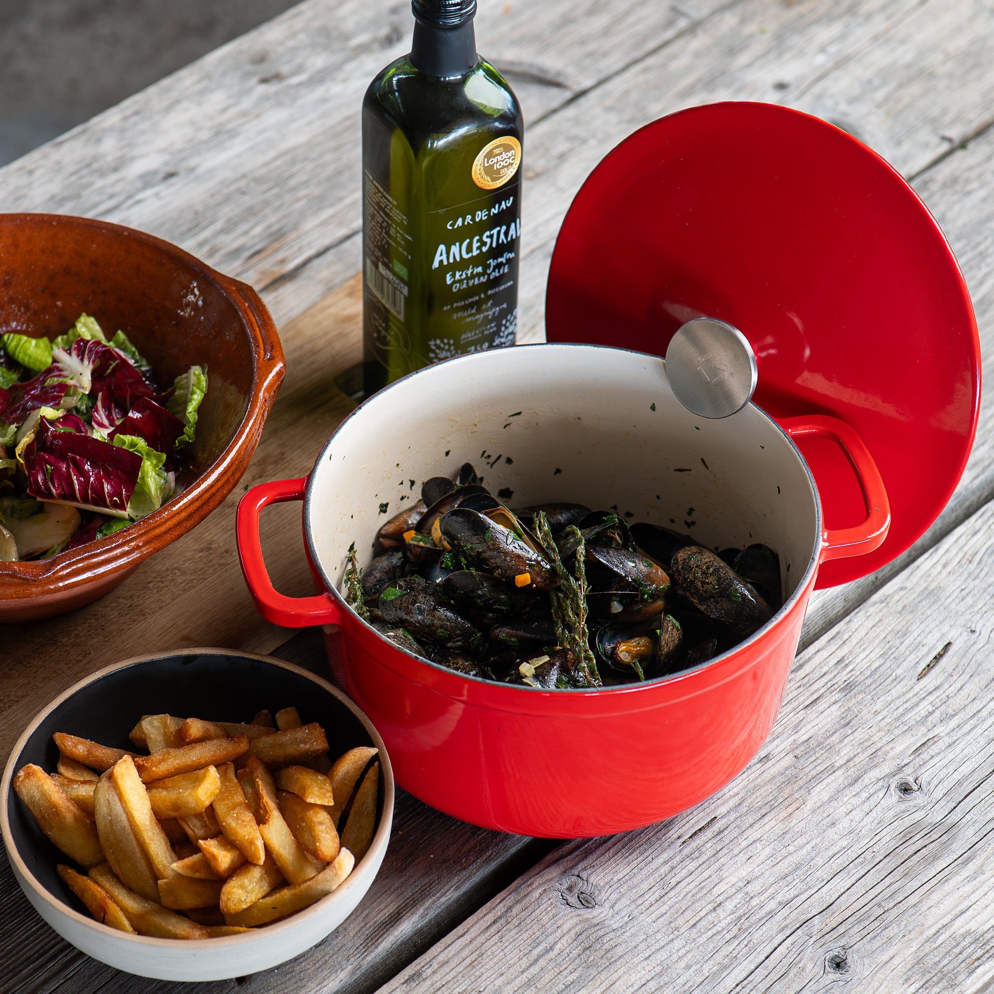I samarbejde med CARDENAU har vi lanceret en farve, som repræsenterer dem, deres tilgang til madlavning og deres franske rødder. Resultatet er en smuk gryde i CARDENAU-rød, som kommer i et begrænset antal. Støbejernsgryden har dannet fundamentet for både private og professionelle køkkener i mange årtier. Derfor har vi udviklet en emaljeret støbejernsgryde, der kombinerer tradition og funktion i en tidløs køkkenklassiker. Skab gode madoplevelser med smagfuld boeuf bourguignon, kylling danoise eller friskbagt, saftigt grydebrød. Det her er gryden, du sætter midt på bordet, når familien samles – både nu og de næste mange år.