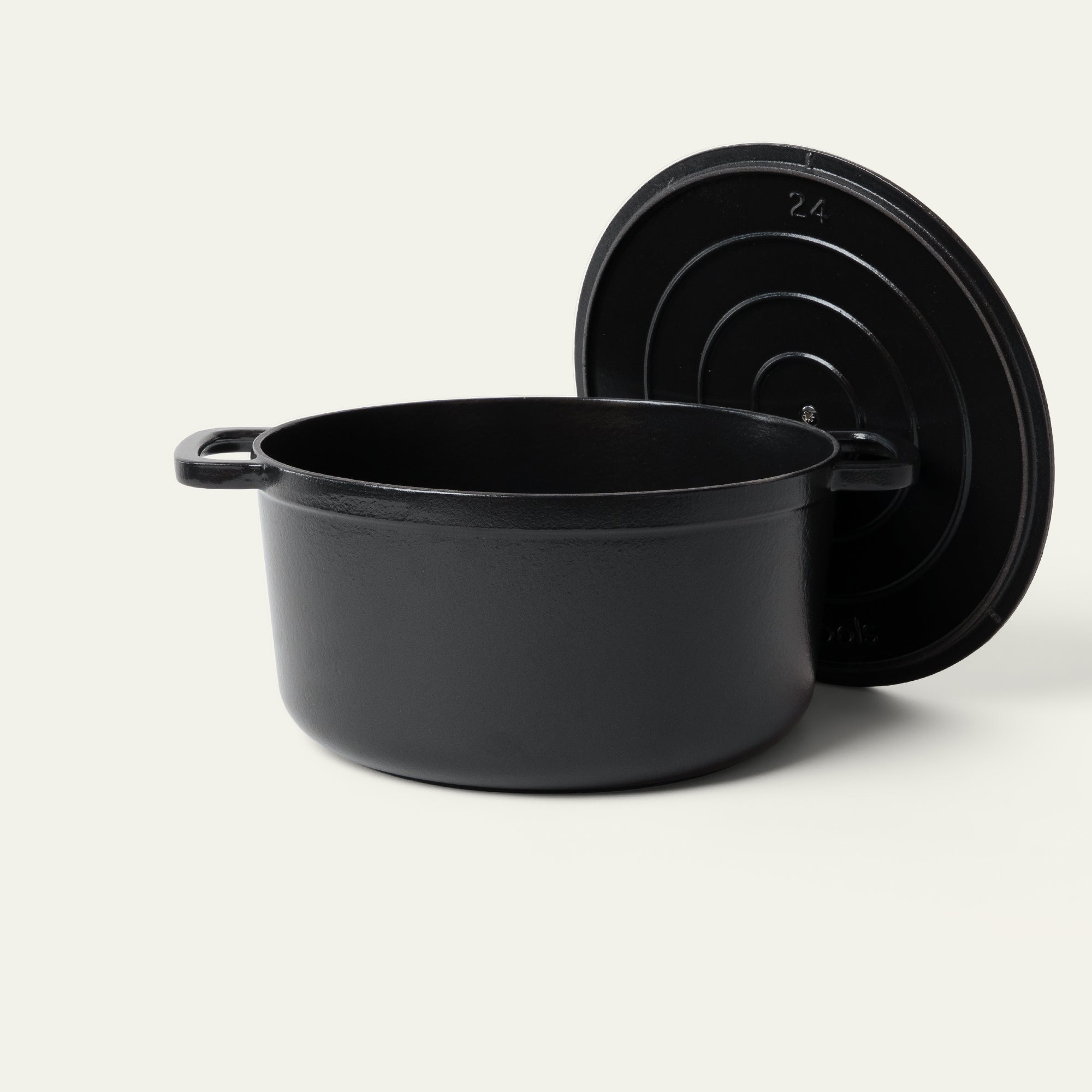 Den rigtige støbejernsgryde køber du kun én gang i livet, og derfor er vi ikke gået på kompromis, hverken i produktion, materialer eller design. Vores gryde produceres hos en fransk virksomhed, der siden 1920’erne har skabt støbejernsprodukter i absolut topkvalitet. Her bliver hver gryde støbt i en individuel sandform af op til 80 % genanvendte materialer. Emaljeringen udføres i hånden af erfarne eksperter, så overfladen bliver så stærk som muligt. Det er nemlig i kvaliteten af emaljen, forskellen på støbejernsgryder viser sig tydeligst — ikke i morgen, men om mange år, når gryden stadig leverer perfekte resultater, gang på gang.