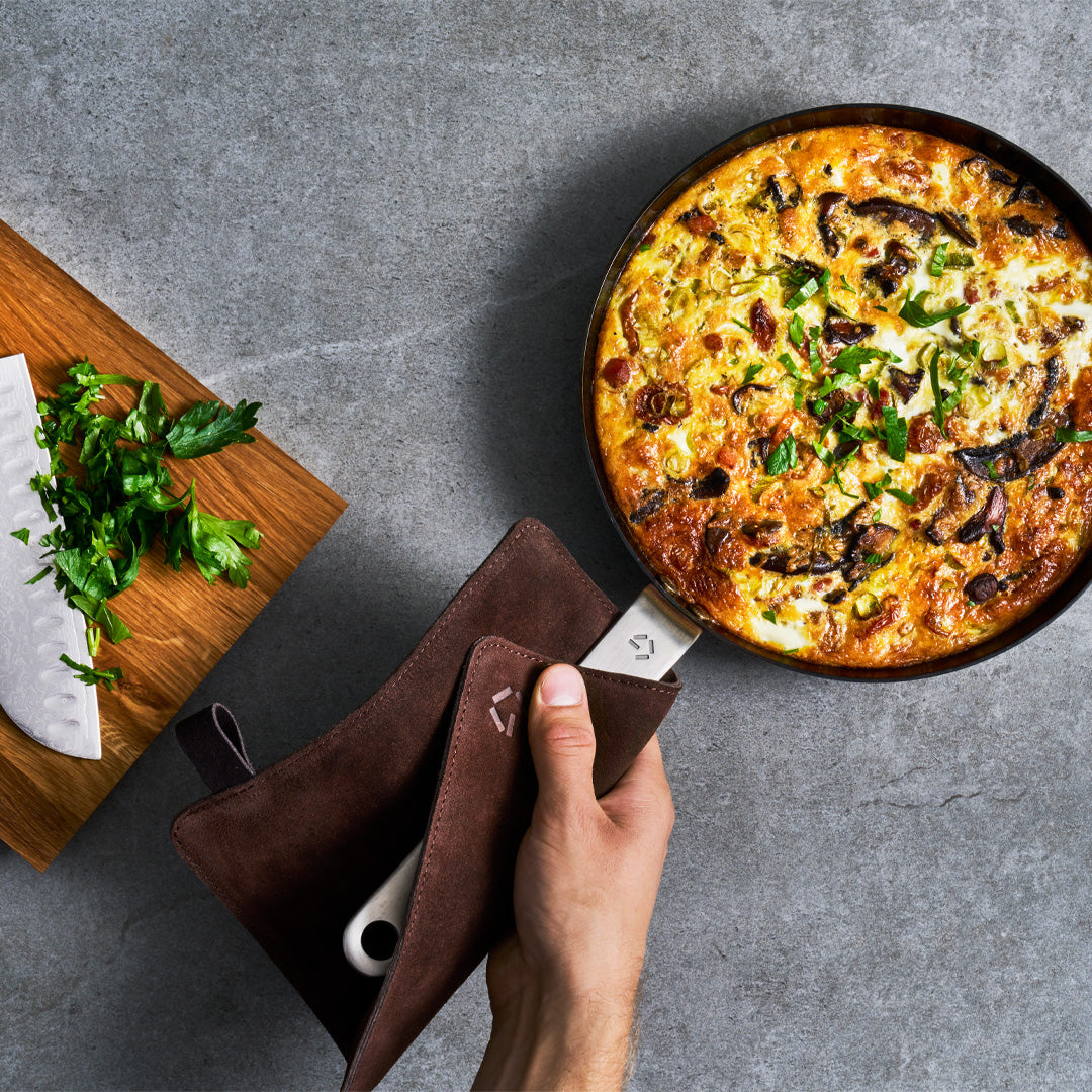 Grydelapperne i 100% ruskind er designet til hurtig og sikker håndtering - eks. når gryden skal løftes ind til bordet eller stegepanden skal fra komfuret til ovnen.