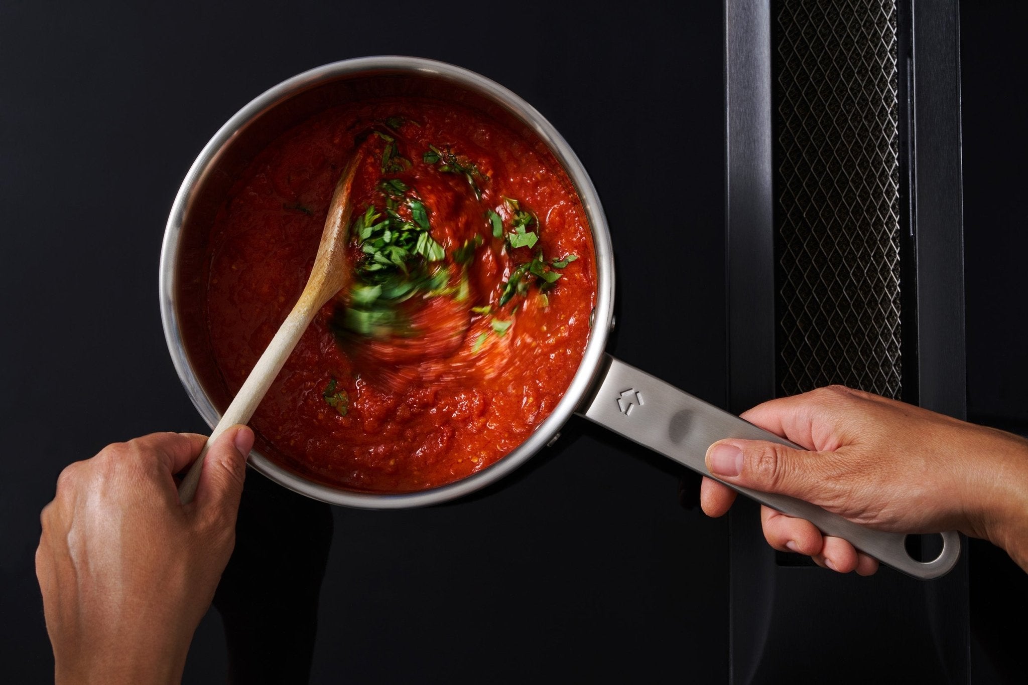 Med 5-ply får du en uopslidelig kasserolle, der holder hele livet med alle fordelene ved rustfrit stål: lav vedligeholdelse, egnet til alle typer madlavning, og så slipper du for PFAS og andre former for skadelige belægninger, der bliver slidt af med tiden og ender i maden.