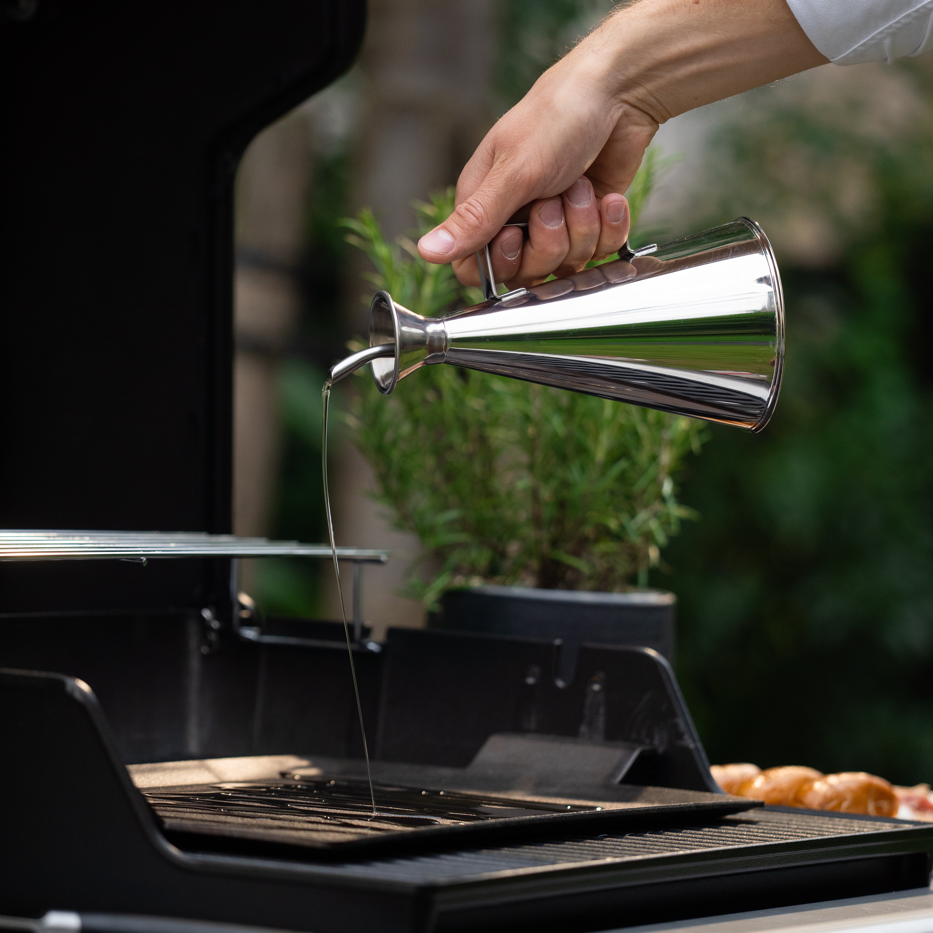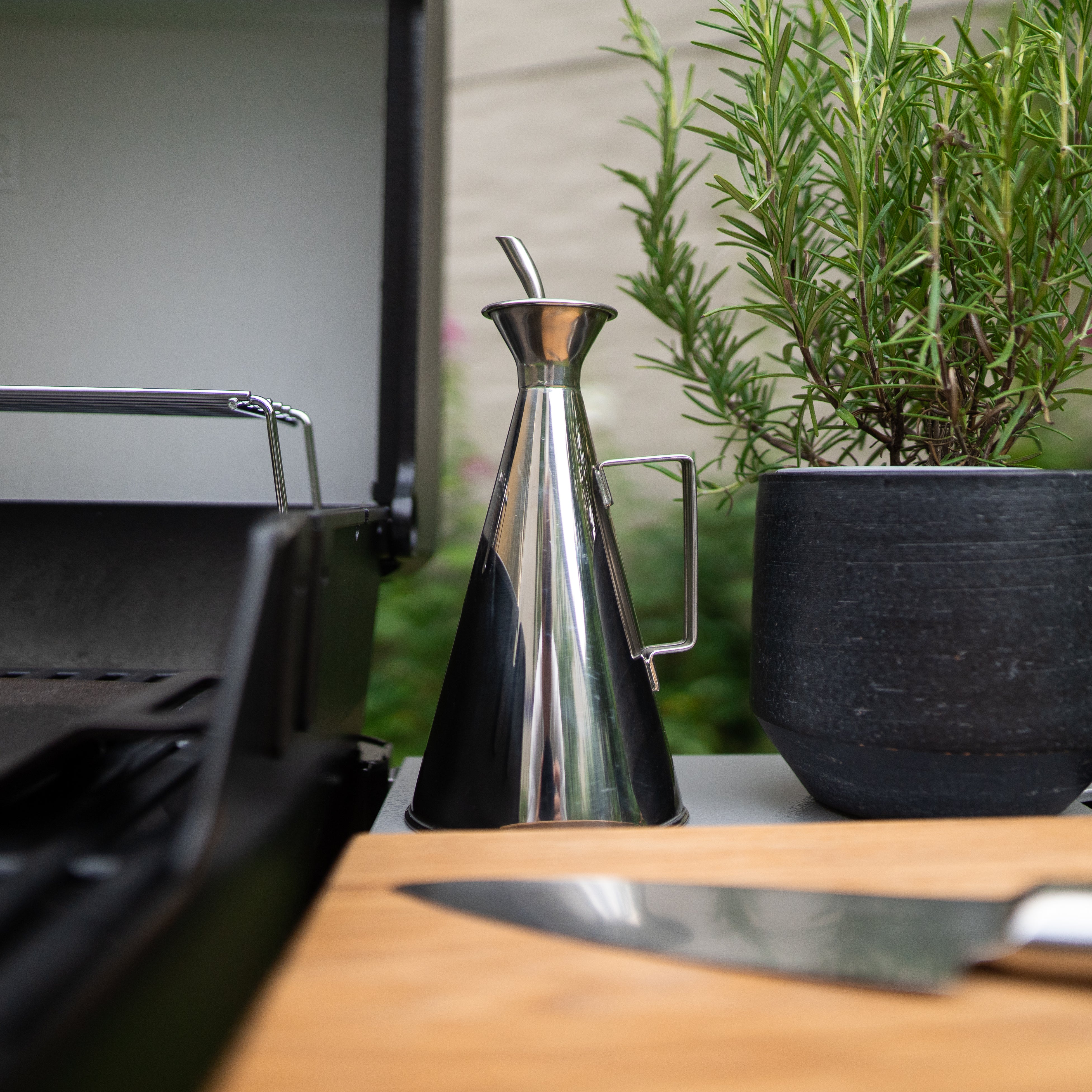 Den robuste oliekande er skabt til at holde i mange år og gør det let at tilføje olie til enhver ret, uanset om du har lagt en stegeplade på grillen, klar til burgere, eller skal afslutte en lækker tomatsalat med en god olivenolie. Det enkle og stilrene design gør oliekanden til en dekorativ tilføjelse til dit køkken, som du helt sikkert ikke har lyst til at gemme væk.